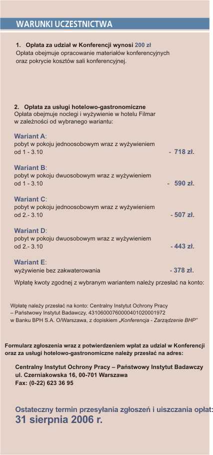 - Ostateczny termin przesyłania zgłoszeń i uiszczania opłat - 31.08.2006 r.