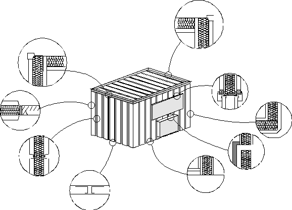 Jest to prototypowa kabina zaprojektowana jako kabina dźwiękoizolacyjna dla przemysłu. Składa się ona z konstrukcji szkieletowej z profili blaszanych. Wypełnienie szkieletu stanowi wełna mineralna w dwóch warstwach ( grubość jednej warstwy 50mm), oddzielonych przeponą z blachy, rolę osłon z zewnątrz i wewnątrz kabiny spełnia blacha trapezowa o grubości 0.8 mm. Płyty osłonowe wewnątrz kabiny są perforowane. Dla potrzeb badań zaprojektowano posadowienie kabiny. Kabina jest posadowiona na stalowej ramie leżącej na podeście drewnianym i gumowej podkładce wibroizolacyjnej firmy Trelleborg. Kabina ta w chwili obecnej wyposażona jest jedynie w wentylację grawitacyjną. Otwór wentylacyjny umieszczony pod oknem wyposażony jest w tłumik labiryntowy.