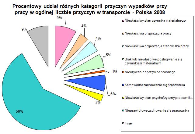 Rys. 13. Struktura przyczyn wypadków przy pracy w transporcie - Polska, 2008.