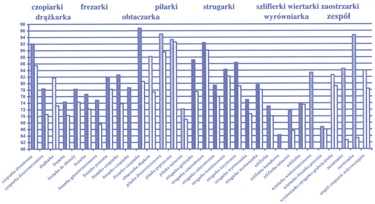 Badania przeprowadzono na grupie 32 obrabiarek do drewna